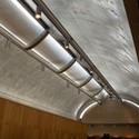 A claraboia tem sua luz direcionada por duas asas de alumínio perfurado, evitando uma iluminação direta nas obras de arte. A beleza dos detalhes está presente neste edifício.