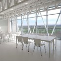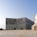 Os edifícios da universidade, especialmente o da Escola de Comunicação, se tornam mirantes para a paisagem, para o vale do Gállego.
