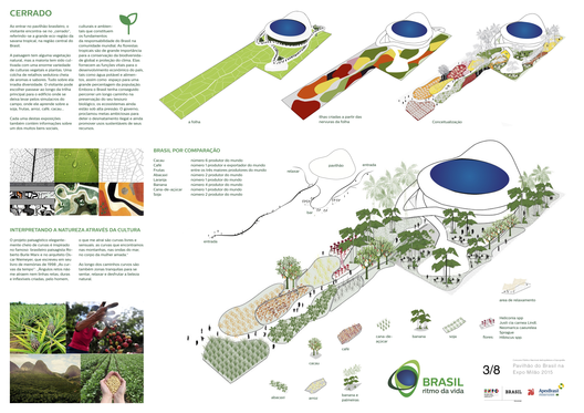 Nosso objetivo para o pavilhão do Brasil é abrir as portas deste celeiro para o visitante, provar, cheirar, ver, sentir e ouvir a riqueza que o país tem para oferecer. Ao longo desta experiência sensorial uma caminhada vai atender a uma grande variedade de pessoas - os pequenos agricultores, bem como grandes proprietários de terras, os políticos e cientistas locais, moradores e membros de organizações ambientais e muitos mais. As histórias fornecerão um vislumbre de acontecimentos passados, questões atuais e futuras inovações na agricultura e produção de alimentos, bem como conhecimentos gerais de nossa cultura. Cada um destes elementos de experiência representa uma característica imanente do país.