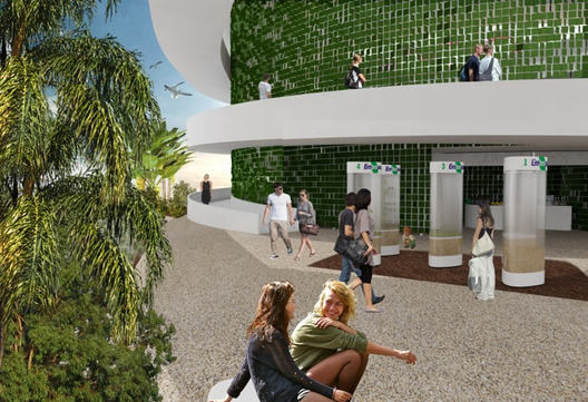 A forma curva é a citação literal do Edifício da Câmara dos Deputados em Brasília e que no topo do edifício principal faz homenagem à Oscar Niemeyer, que em seu vocabulário diz que a arquitetura é sempre combinada com prazer sensual. Para aumentar a experiência sensual do visitante, a fachada do edifício é composta por milhares de placas que reagem a impulsos do ambiente, tais como o vento, o som ou o sol. Um jogo complexo de cor e luz.