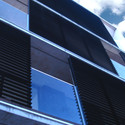 A fachada norte foi projetada pensando na luz solar. Projetamos um sistema de brises de alumínio preto cuja separação e proporção foi estudada de acordo com o ângulo de incidência solar. No verão, para bloquear o sol em horários de maior intensidade. No inverno, para deixar passar os raios de sol, mais baixo e horizontal. Em frente à alvenaria, atrás das varandas, também foi pintado de preto, de modo que a luz solar no inverno passe através dos brises de alumínio e chegue até as paredes frontais aquecida, criando um efeito similar ao “muro trombe''. Os brises foram colocados criando uma composição dinâmica que fazem da fachada algo vivo, nunca estático. Esta composição simula um sistema de brises móveis, mas eles realmente são fixos para simplificar a sua manutenção ao longo do tempo. O sistema se completa com os panos de vidro para segurança, que provocam aberturas completas na tela de alumínio. São aberturas verticais de laje à laje para que os brises não se tornem as típicas "barras" que atualmente vemos nas fachadas da cidade.