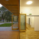Como o edifício é também uma referência em sustentabilidade, seus programas desempenham o papel de difundir o pensamento ecológico e ensinar um comportamento sustentável, portanto, consideramos este aspecto durante o processo de projeto. A fonte de aquecimento de água quente deste econômico edifício de baixa energia é resolvida por uma bomba de aquecimento a vapor. O aquecimento de radiação é o aquecimento da superfície (chão aquecido e teto), o arrefecimento é fornecido pelo arrefecimento da superfície de radiação do teto. A temperatura dos espaços é controlada por válvulas termostáticas. A fachada sul é protegida no verão pela cobertura fortemente em balanço, ao mesmo tempo que permite os raios de sol em ângulos agudos no inverno.