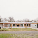 Descrição enviada pela equipe de projeto. Este monólito de tijolo é uma referência direta aos edifícios emblemáticos da arquitetura sacra da região de Toulouse, nomeadamente à tipologia do "borde rouge" ou "casa vermelha". Com a sua forma distintiva, o edifício assinala claramente a sua identidade de igreja - a sua torre sineira, a sua cruz e a sua estrutura em forma de abside tornam-no facilmente legível no tecido urbano. Não se trata de um monumento isolado, mas de uma componente totalmente integrada no contexto suburbano circundante, reflectindo a própria natureza da comunidade paroquial que serve. As escolhas arquitetônicas e paisagísticas foram diretamente influenciadas pelo seu enquadramento urbano, pelas condicionantes e pelos edifícios vizinhos.