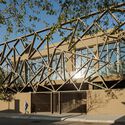 Descrição enviada pela equipe de projeto. Esta instalação de apoio de praia com serviço completo está localizada na Praia da Barra, em Ílhavo, em conformidade com o Plano de Gestão da Zona Costeira Ovar-Marinha Grande. Esse plano, em vigor desde 2017, exigiu que a instalação fosse deslocada para leste do calçadão que liga as praias locais, com a consequente demolição da estrutura existente. Formalmente, o edifício é definido por sua geometria circular, que protege os usuários dos ventos predominantes do norte com o terraço voltado para o sul, reduzindo o impacto visual ao alinhar o vazio interno do anel com um dos pontos mais altos da duna. Durante séculos, a planta circular foi associada à unidade, harmonia e até mesmo à eternidade, incentivando a continuidade espacial.