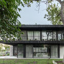 O remate da casa se revela como um oásis urbano: uma cobertura densamente vegetada a qual se encontra com a copa das árvores que emergem do jardim. A sensação é única — natureza pura, vistas em 360°, conexão com o horizonte e, mais intensamente, com o céu, de dia e de noite. Uma delicadeza que a própria casa se permitiu oferecer.