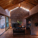 O principal espaço de estar está recuado, criando espaço para o jardim e a garagem, junto com uma área de chá na frente. O principal espaço de estar inclui uma sala de estar, uma sala de culto e uma sala de jantar no centro do terreno, conectado a 4 quartos e espaço auxiliar nos fundos.