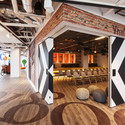 A garagem onde Larry Page e Sergey Brin começaram a Google, foi a inspiração para o conceito dos interiores. Elementos peculiares espalhados ao longo da sede ilustram essa era - de paredes de graffiti e luminárias de papelão à cobertura aparente e a parede de contêiner do pequeno auditório, também referido como o Tech Talk.
