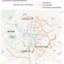 Por esse motivo, o documento indica a construção de 90 quilômetros de vias para ônibus nesse setor da cidade, já que o meio mais utilizado até agora para chegar à periferia é o automóvel, e isso deve ser mudado. De fato, o diagnostico afirma que, diariamente, sete de cada dez viagens que são feitas de automóvel em Madri, têm como origem ou destino esse setor.