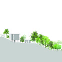 As vias de circulação de veículos são pavimentadas com pedras mantendo a permeabilidade do solo. Os espaços de uso privativo são integrados ao espaço de uso coletivo - um grande jardim - por meio de terraços e caminhos de pedestres.