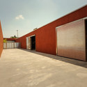 O primeiro vazio serve de fachada para os escritórios e o último, como carga e descarga de materiais, enquanto a abertura central muda de forma e posição para resolver diferentes necessidades.