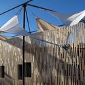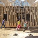 Uma "tela-parede" de madeira envolve o projeto e atenua o sol forte, permitindo a ventilação cruzada. Há dois ambientes principais que são multifuncionais e separados por um átrio de entrada ao ar livre. Acima, um terraço incentiva atividades ao ar livre na sombra, enquanto é possível desfrutar de vistas distantes.