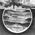 Esta composição de puras tipologias espaciais – o percurso, a abóbada e a cúpula – é analisada e implementada para emoldurar o plano terrestre, em vez de da esfera celestial. Através do ato de enterrar, estas formas arquitetônicas familiares são transformadas, criando um espelho abstrato sob as ruas da cidade. Pelo “santuário” subterrâneo os arquitetos são capazes de se libertar das obrigações do objeto arquitetônico.