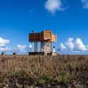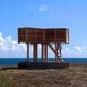 Tendo em conta a localização desta construção – numa zona inóspita sujeita à violência do mar e do vento –  o nível inferior consiste num conjunto de três bancos de betão, inspirados nos grandes tetrapods que protegem aquela zona do mar, que garantem carácter permanente à peça. Estes bancos sugerem uma nova centralidade e, devido ao seu caráter permanente, registam as intenções da peça caso as fortes tempestades incidam sobre aquele local.