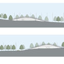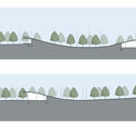 Semelhança artificial da topografia original, a superposição desta camada superior brinda aos visitantes um parque com movimentos ondulantes que consegue gerar ambientes diferentes. A superfície se divide em áreas ajardinadas, decks de madeira e áreas secas, divisão esta que permite sua multiplicidade, em reação à seus usos.