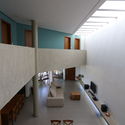 A rua em declive e construção preexistente no lote ao lado, tornaram a privacidade um dos pontos chave para este projeto. A solução foi iluminar a sala por aberturas pouco usuais: uma zenital e uma próxima ao piso, além de uma ampla janela para os fundos do lote, dando continuidade ao eixo criado pela zenital. O pergolado de concreto pintado abaixo da abertura zenital cria efeitos de luz e sombra diversos ao longo do dia na parede cega. A luz dá dinamismo ao espaço.