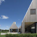 Descrição enviada pela equipe de projeto. Um casal com uma propriedade em uma enseada com vista para o oceano desejava uma casa que fosse confortável para os dois. No entanto, com seu amor por receber visitas, a casa deveria se expandir nos finais de semana para acomodar seus filhos, netos e convidados. Para criar a sensação desejada de conforto e paz, também era importante que o projeto dialogasse com o ambiente bucólico e as tradições da construção vernacular: casas e celeiros que são frequentemente construídos com a possibilidade de se expandirem ao longo do tempo. Os estudos históricos anteriores revelaram que remeter à fazendas na Nova Inglaterra de uma maneira inovadora poderia fazer com que alcançássemos ambos os objetivos.