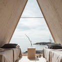 Descrição enviada pela equipe de projeto. A Nolla (= zero), projetada pelo designer finlandês Robin Falck, está localizada nos arredores do centro da cidade de Helsinque, na ilha de Vallisaari. A cabine foi construída a partir de materiais sustentáveis e é projetada para um estilo de vida simples, com emissões mínimas ou nulas, levando em consideração a natureza circundante em todos os aspectos. Um protótipo com impacto ambiental mínimo no espaço e em termos de emissões de dióxido de carbono.