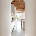 Esse loft é um experimento em superfícies materiais e gestos formais para criar uma sensação de presença na casa. As placas de madeira envolvem a ilha da cozinha, centrada entre as transições arqueadas e os puxadores da cozinha, feitos de cobre para mostrar as marcas de uso ao longo do tempo.