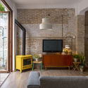Conectar a casa ao pátio ajardinado com uma árvore e trepadeiras. A cozinha está localizada na parte de conexão da casa com o pavilhão, transformando o pátio na parte central da casa, funcional e espacialmente. Controlar as vistas entre o pavilhão anexo e os apartamentos nos andares superiores e proteger o pavilhão do sol excessivo do verão. Usar apenas materiais naturais aproveitando ao máximo sua textura para deixá-los sem revestimento. Toda a intervenção gravita em três elementos: adobe, as paredes brancas e a madeira.