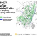 Tendo em vista a promoção do distanciamento social, o descongestionamento da rede de transporte público e a redução de problemas respiratórios (agravados pela poluição do ar causada pelos veículos), a cidade de Bogotá, na Colômbia, anunciou em março a habilitação de 76 novos quilômetros de faixas destinadas a bicicletas, localizadas em vias existentes, mas separadas dos carros por cones.