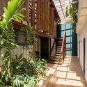 No residencial, jardineiras abaixo das janelas irão filtrar o que é visto com o crescimento das plantas. Um pequeno pátio foi projetado para que aumentasse a quantidade de luz e ventilação entrando na casa, e na fachada frontal, aumentamos a abertura com uma grande porta de vidro translucido.